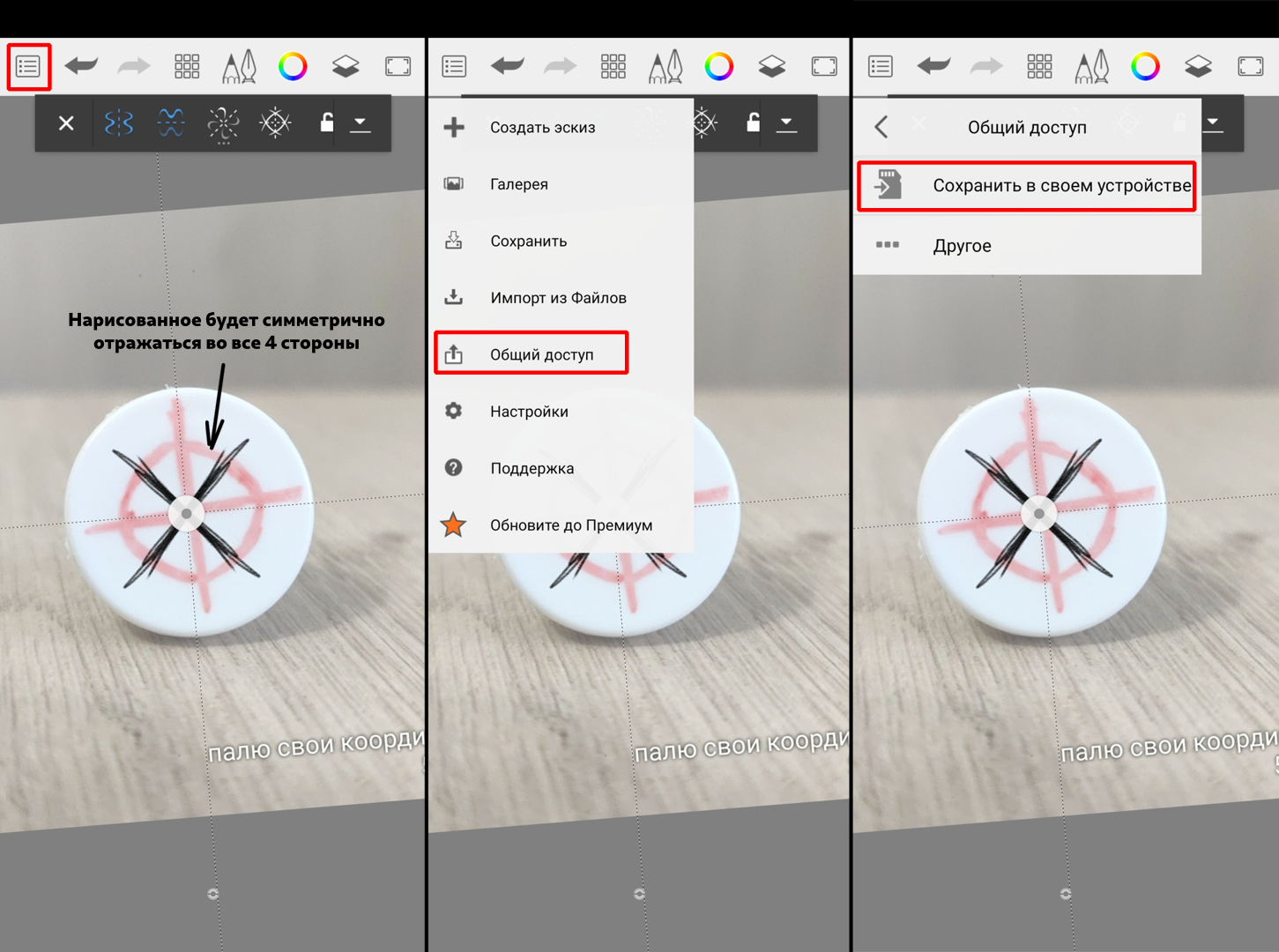 Выбираем "Со штампом", это накладывает надпись в левом углу экрана в заданном формате (включая координаты и подпись с описанием).