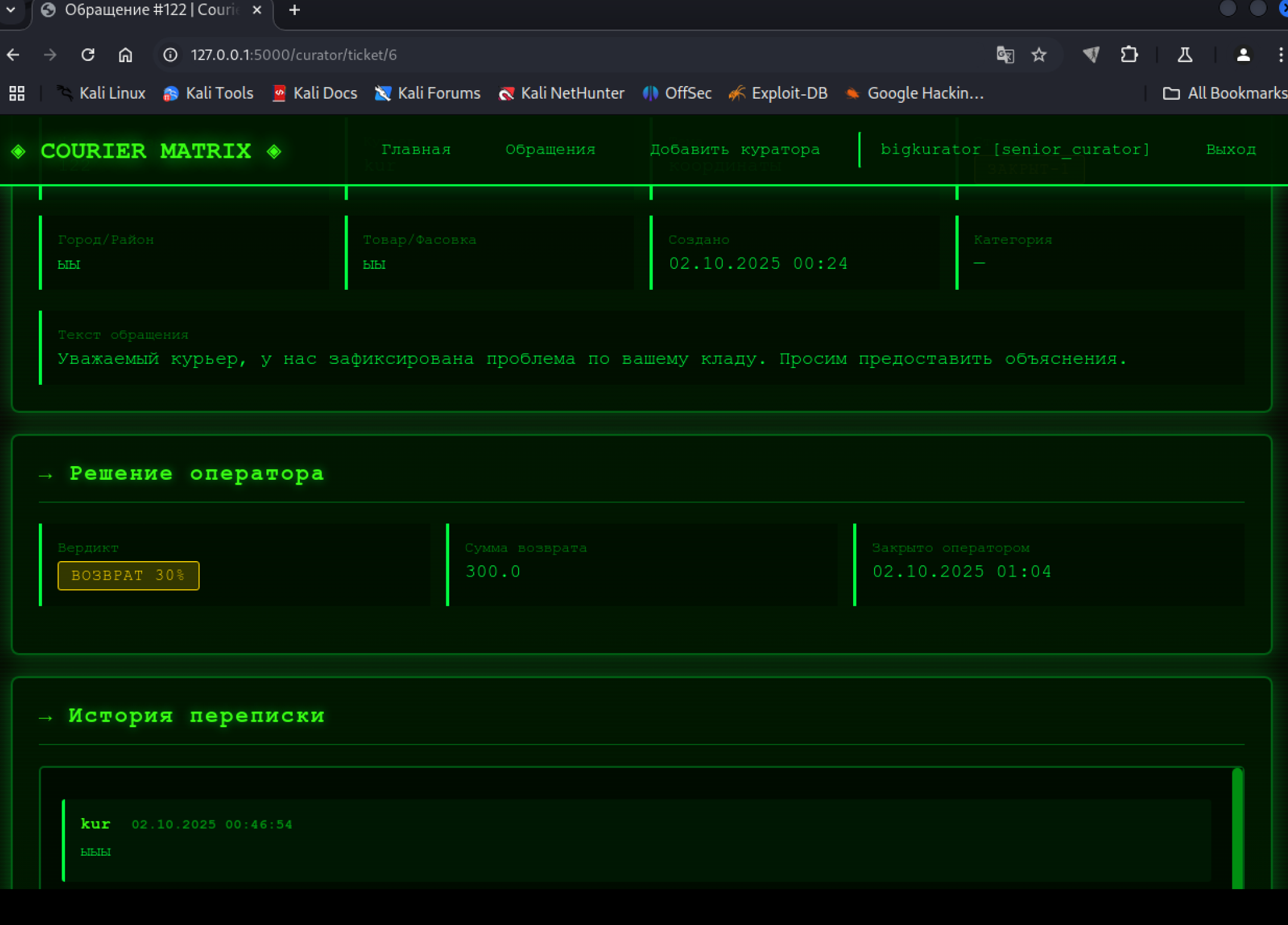 День 2: Курьер отвечает с доказательствами