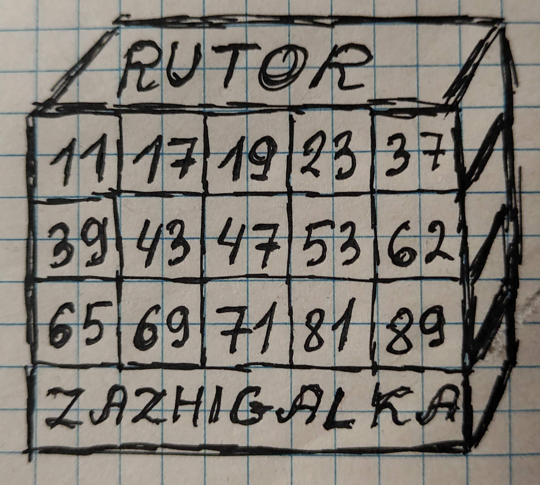 Написать на листке бумаги числа в таблице 3*5 от 1 до 99