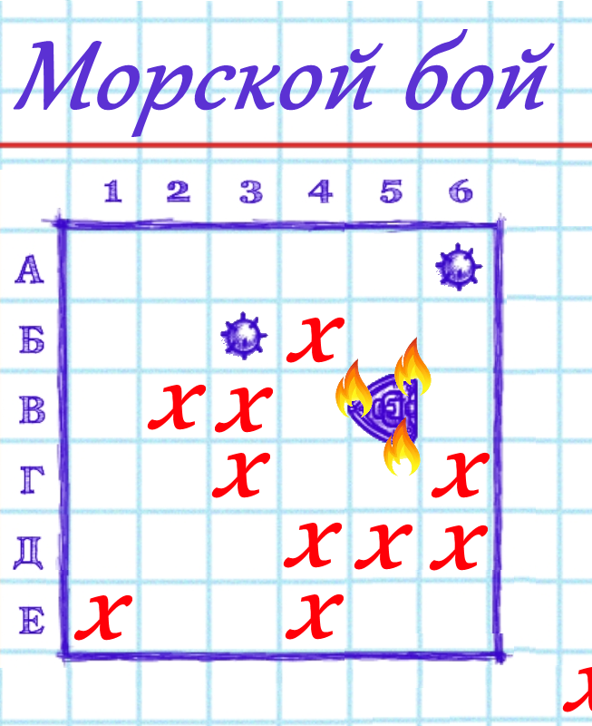 Следующая публикация картинки будет с проявленными объектами (крестик мина или корабль), которыми вы указали координаты.