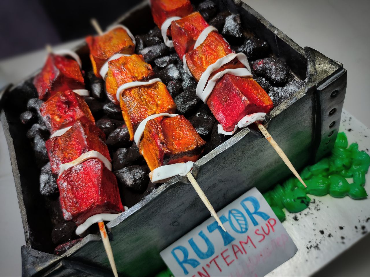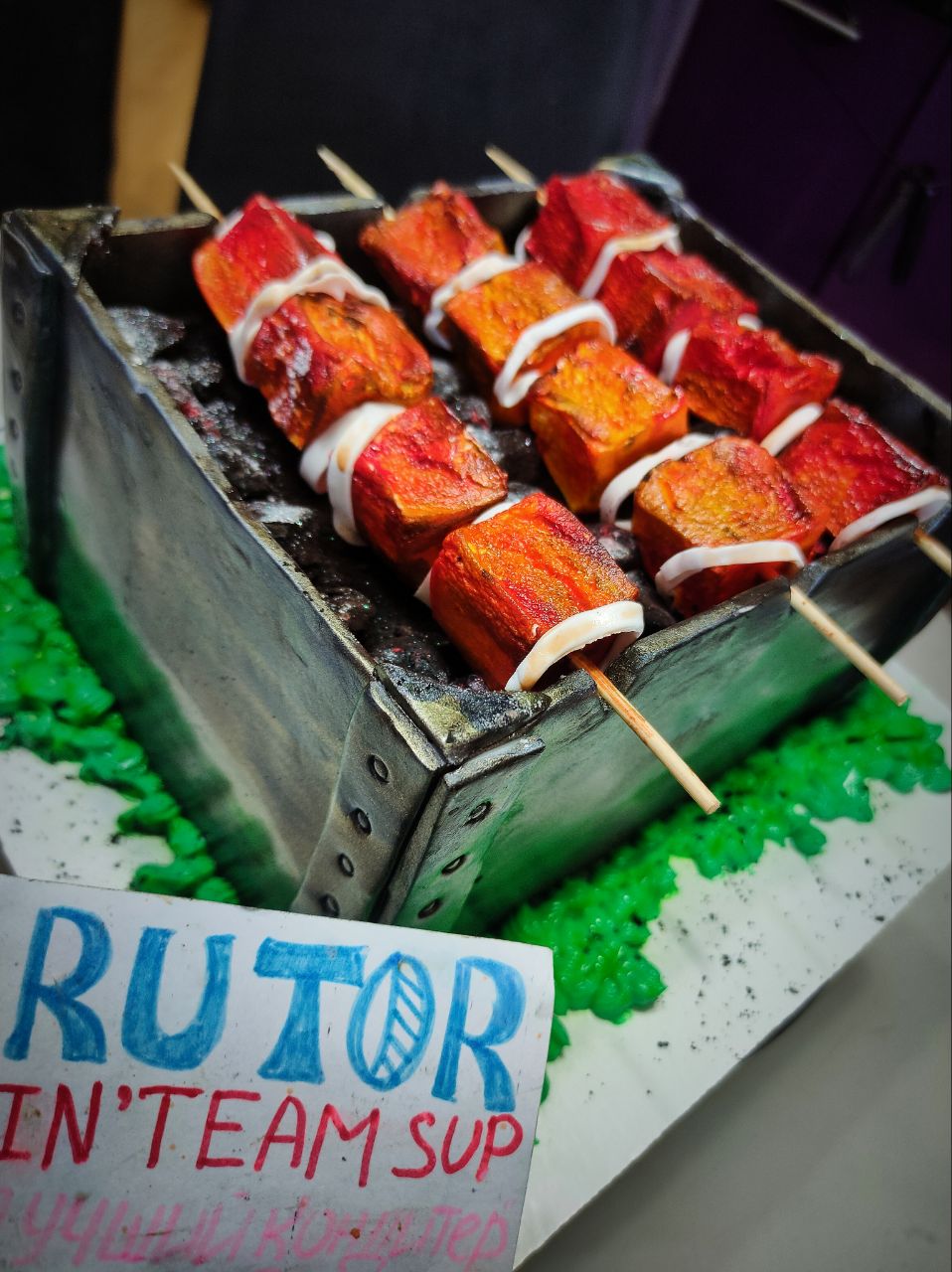 – шла наравне с победителем, но тот факт, что та работа была выложена первой, дало очки сверху. А так, не менее эстетичная и креативная работа. Шашлык можно спутать с настоящим=)