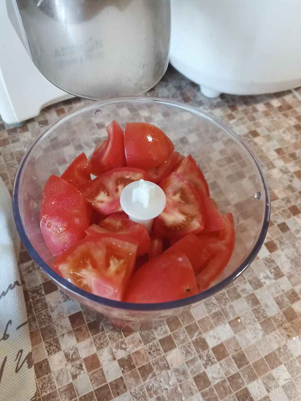 Пока манты варятся сделал соус из помидоров , как обычно смолов блендере с солью и перцем
