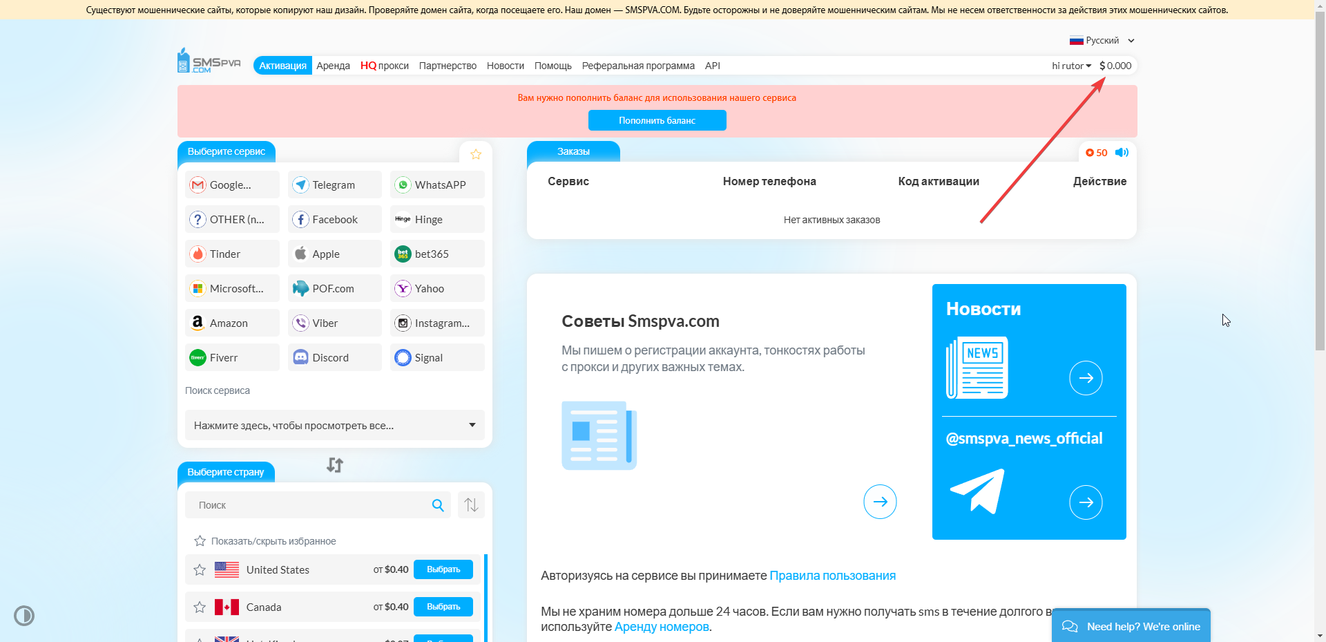 Далее идем на сайт сервиса который предоставит нам номер телефона для приема смс за биткоин !